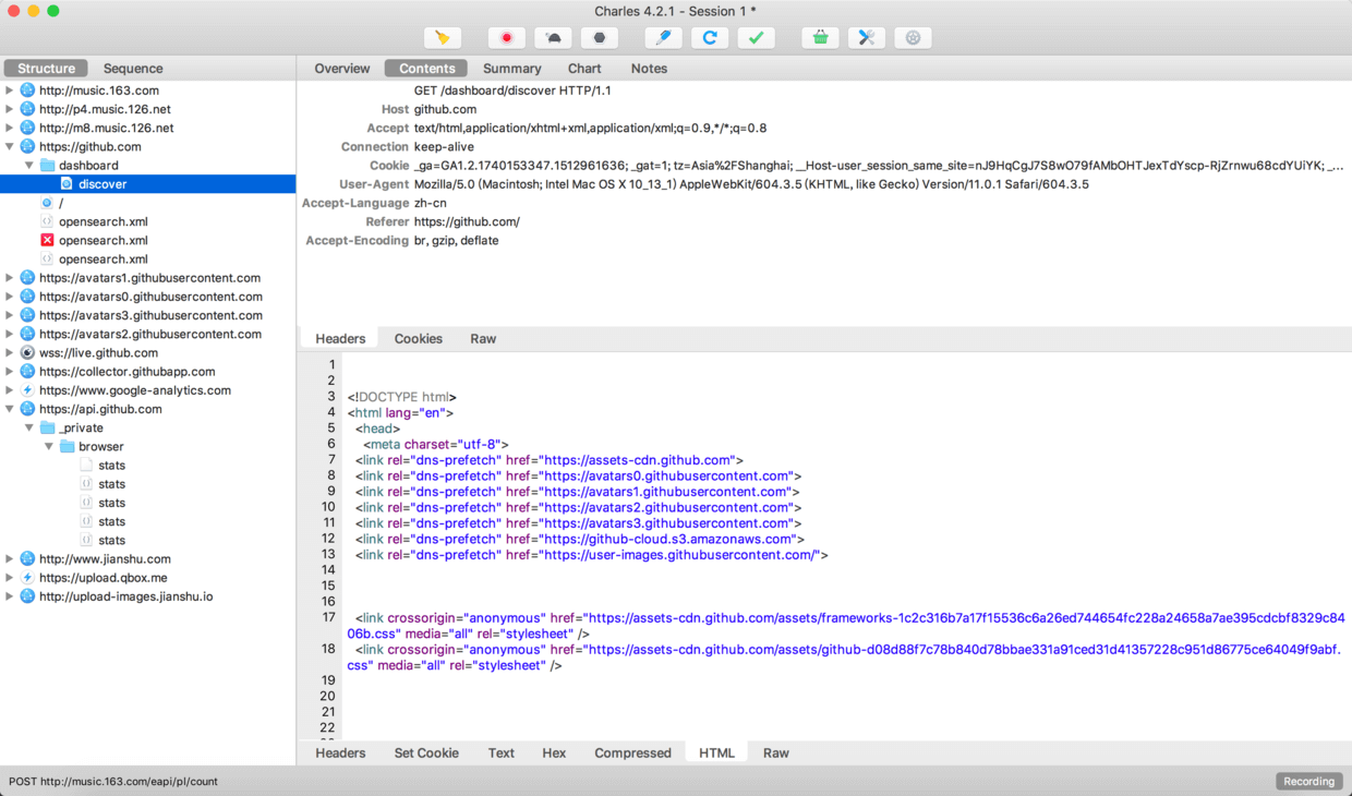 此时Mac端可以进行抓包了